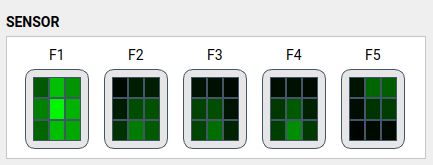 The GUI provides a visual representation of tactile sensor data. Pressure levels are indicated by color changes: