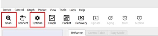 Once the scan is complete, all connected actuators will be listed in the device panel on the left side of the application.
